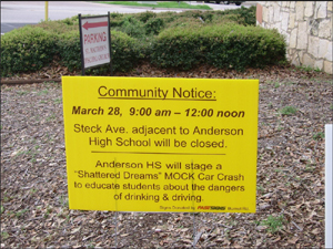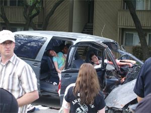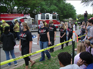 Eine Gruppe Schüler stellte einen Autozusammenstoß mit Todesfolge dar. Eine Schülerin,