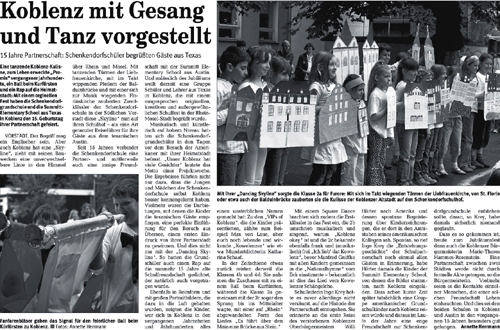 Wieland, Görres Gymnasium, und ihre Austauschpartnerin Nicole Bisang, Anderson High School, Austin Tx, erhielten in Berlin ihre Urkunden für eine erfolgreiche Teilnahme an einem Aufsatz-Wettbewerb für deutsche Schüler zusammen mit ihren amerikanischen Partnern.