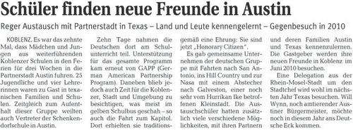 Koblenzer Grundschüler der Partnerschaft Koblenz/Austin in Austin Ostern 2009