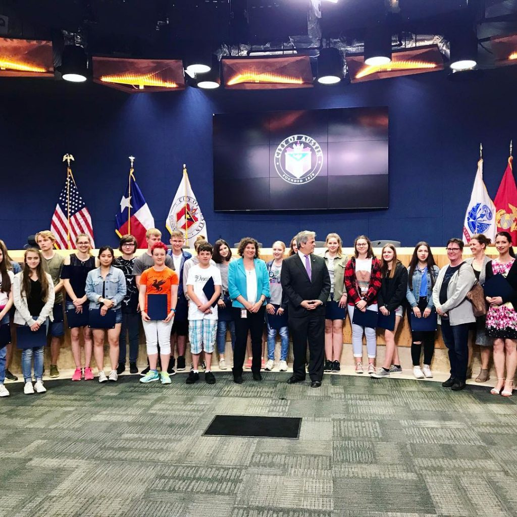 In diesem Jahr fand der Schüleraustausch zum 27. Mal statt. In diesem Jahr wurden die Schüler von Mayor Steve Adler zu “Honorary Citizens of the City of Austin” ernannt.
