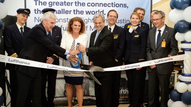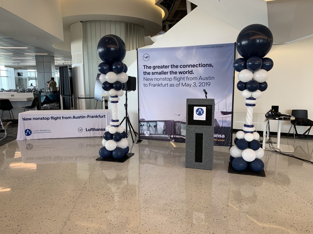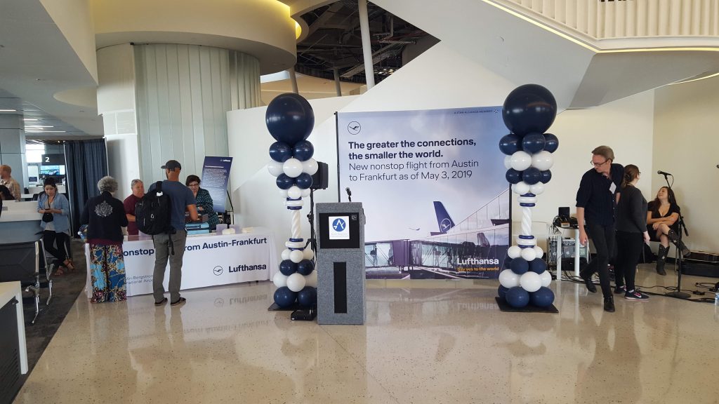 Beim Gate Event des Erstfluges Austin – Frankfurt der Lufthansa am 03.05.2019:
