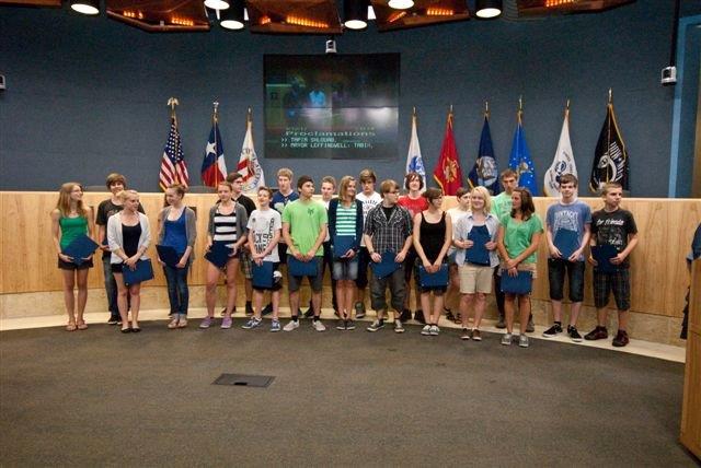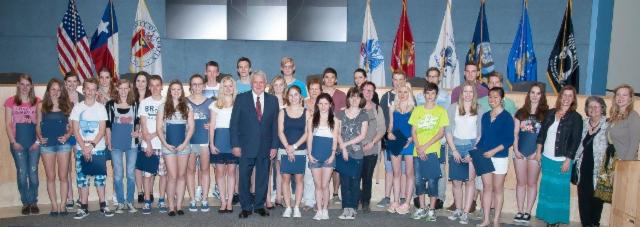 2014 Schülergruppe in Austin, City Concil mit Mayor Lee Leffingwell und Lehrer