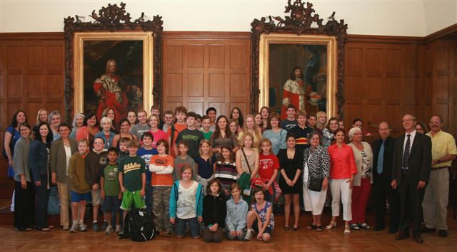 Empfang der Schüler Anderson High Scholl und Summit Elementary Scholl am 16. Juni 2010 im Rathaussaal, von rechts im Anzug Bürgermeister Knopp, 1. Vors. Michael Wolf, Vorstandsmitglied Hanne Trumpp.